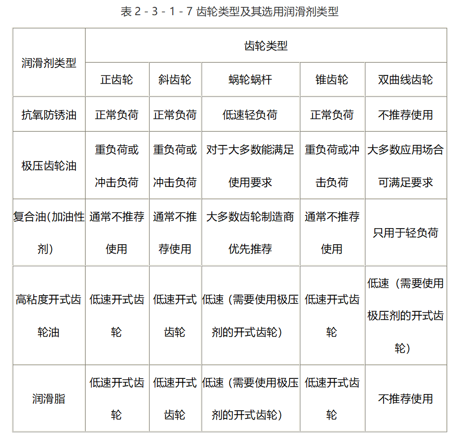 ② 如果齿轮制造商推荐使用其它类型的齿轮油,也是可以的。